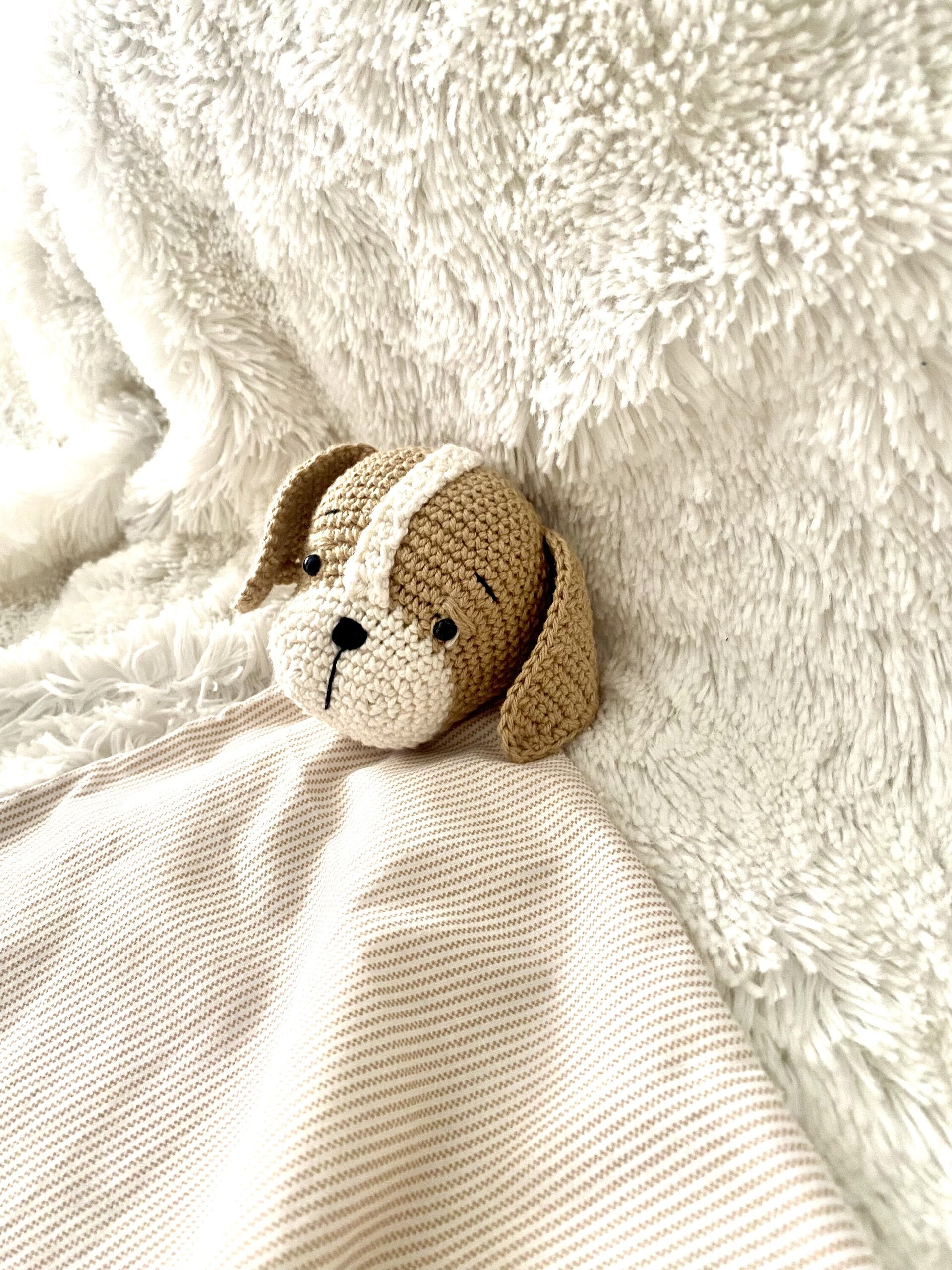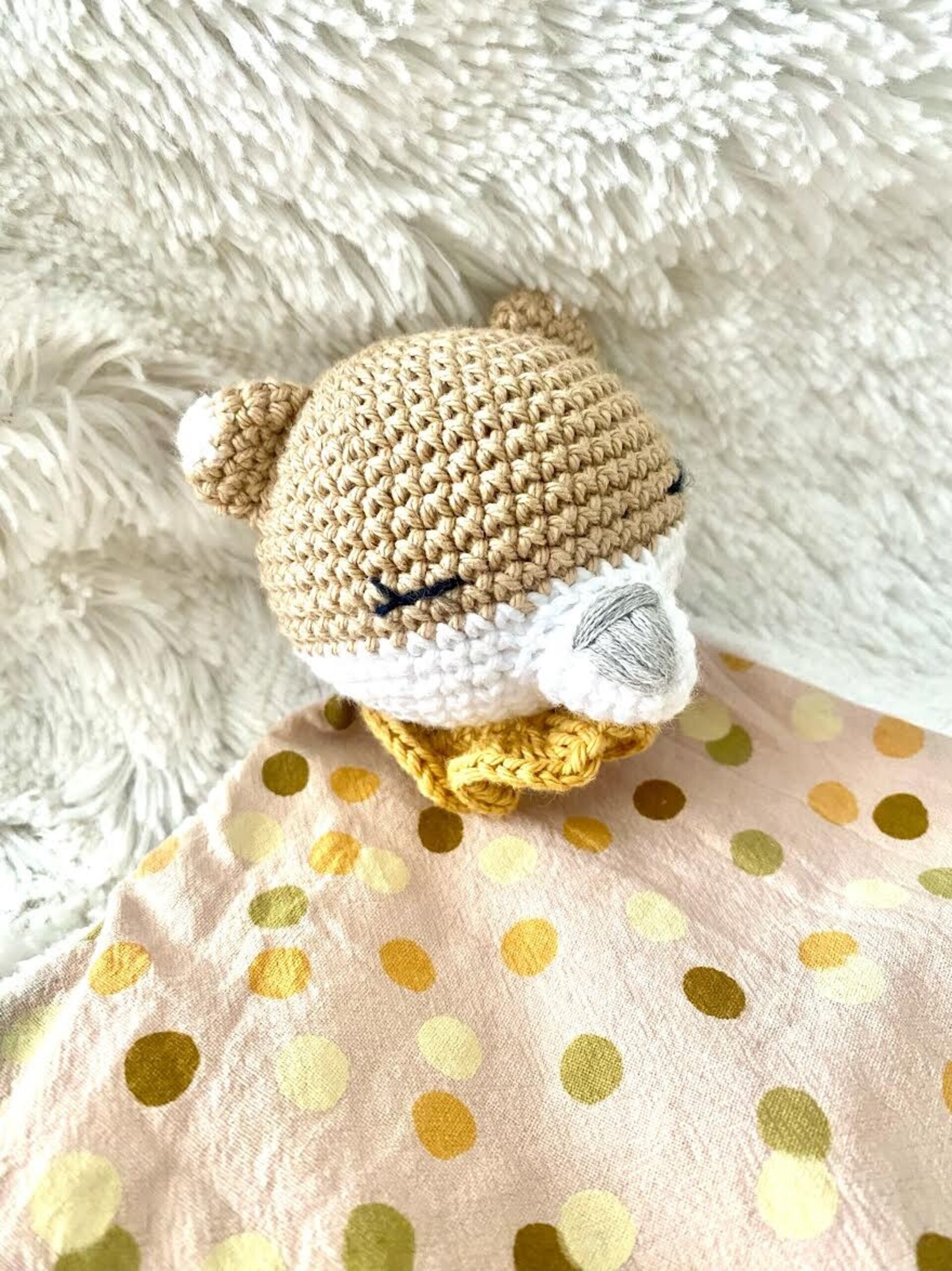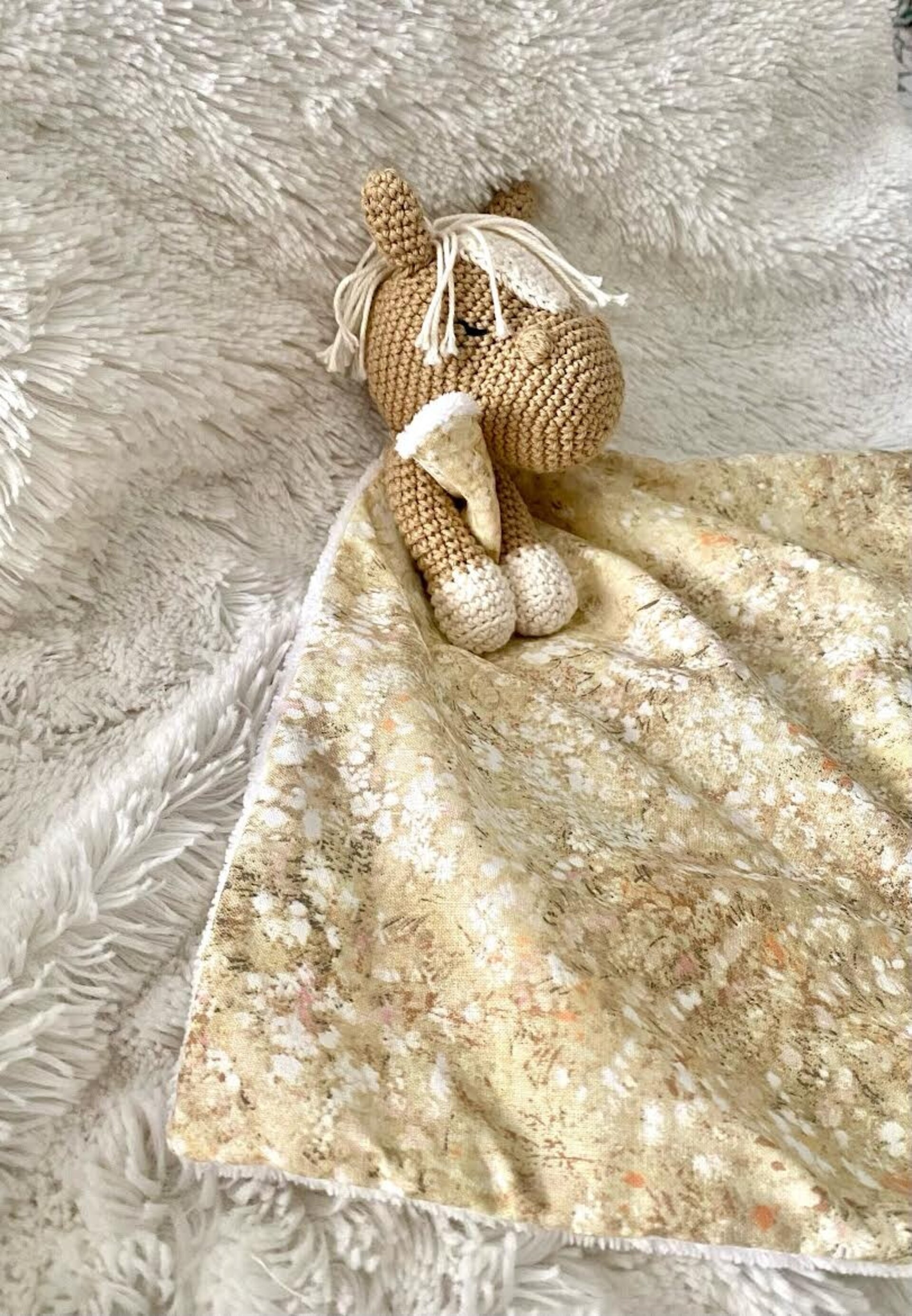 El doudou o manta de apego es una mantita que está unida a un muñequito de ganchillo y se emplea para garantizar la tranquilidad y el sueño del bebé.